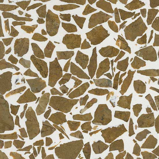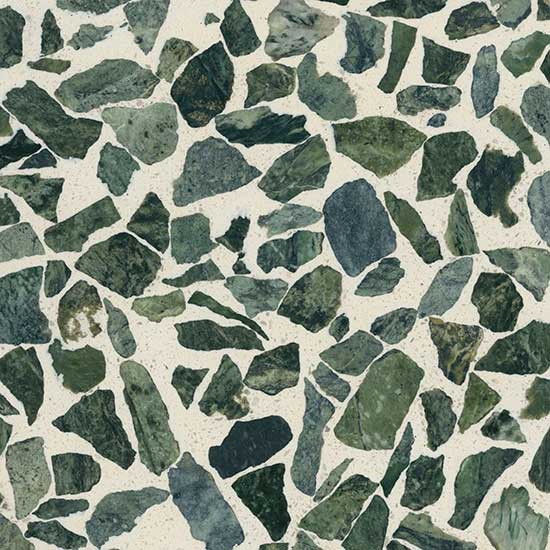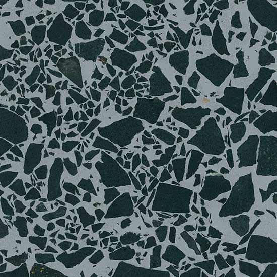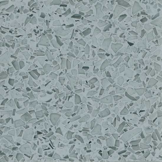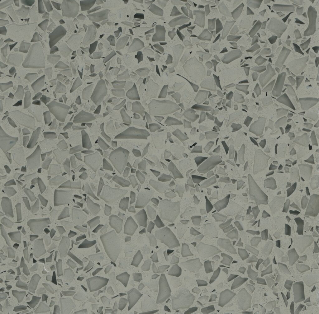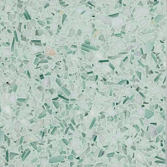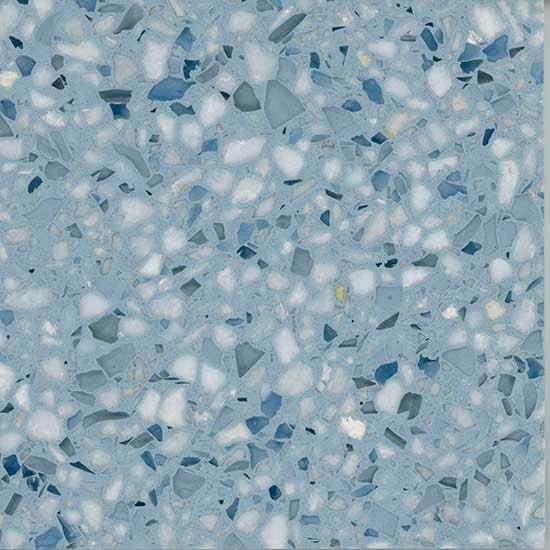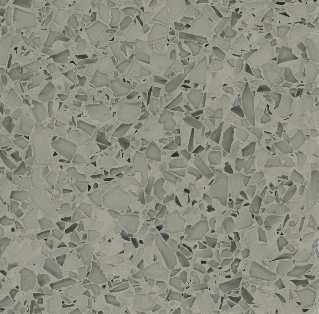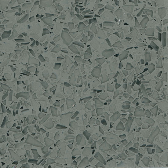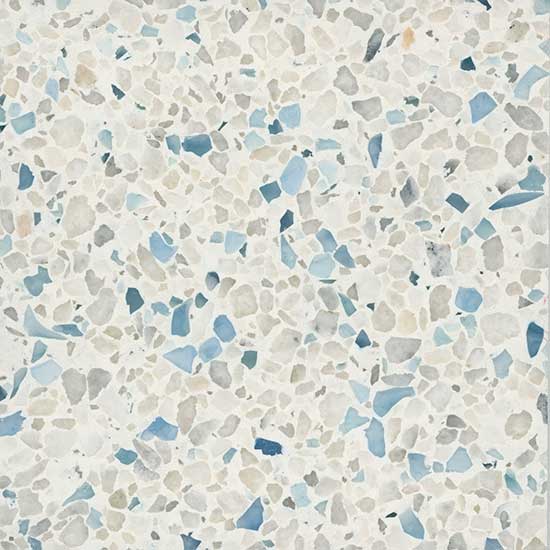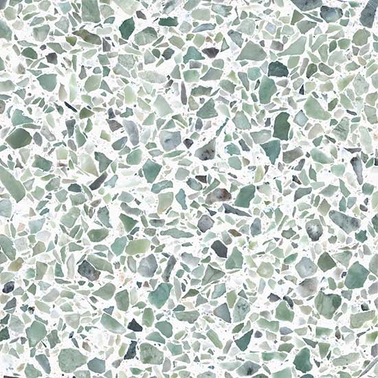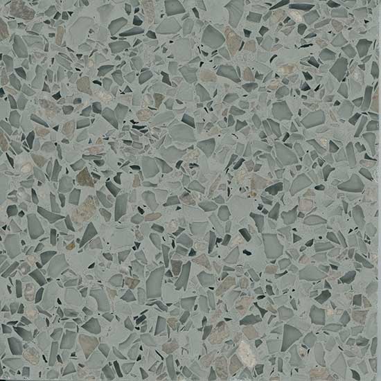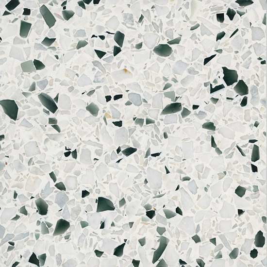 The Clear Series Terrazzo features 100% clear glass chips, set in a colored binder to create a smooth, reflective and visually striking finish. It provides a sophisticated look because of its uniform and monochromatic appeal, making it a good choice for entryways, lobbies, and high-traffic areas.
